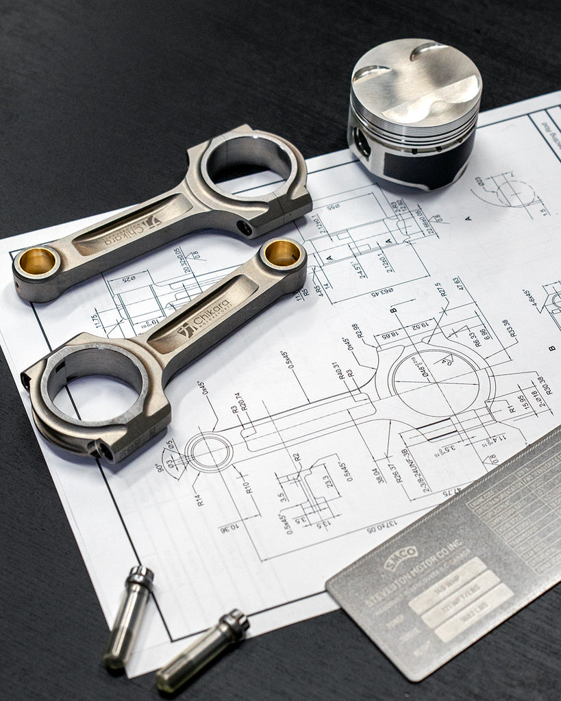 - Custom connecting rods load rated at over 150 horsepower per cylinder, designed specifically to require no modifications to the engine block and a perfect compression ratio for a street engine.